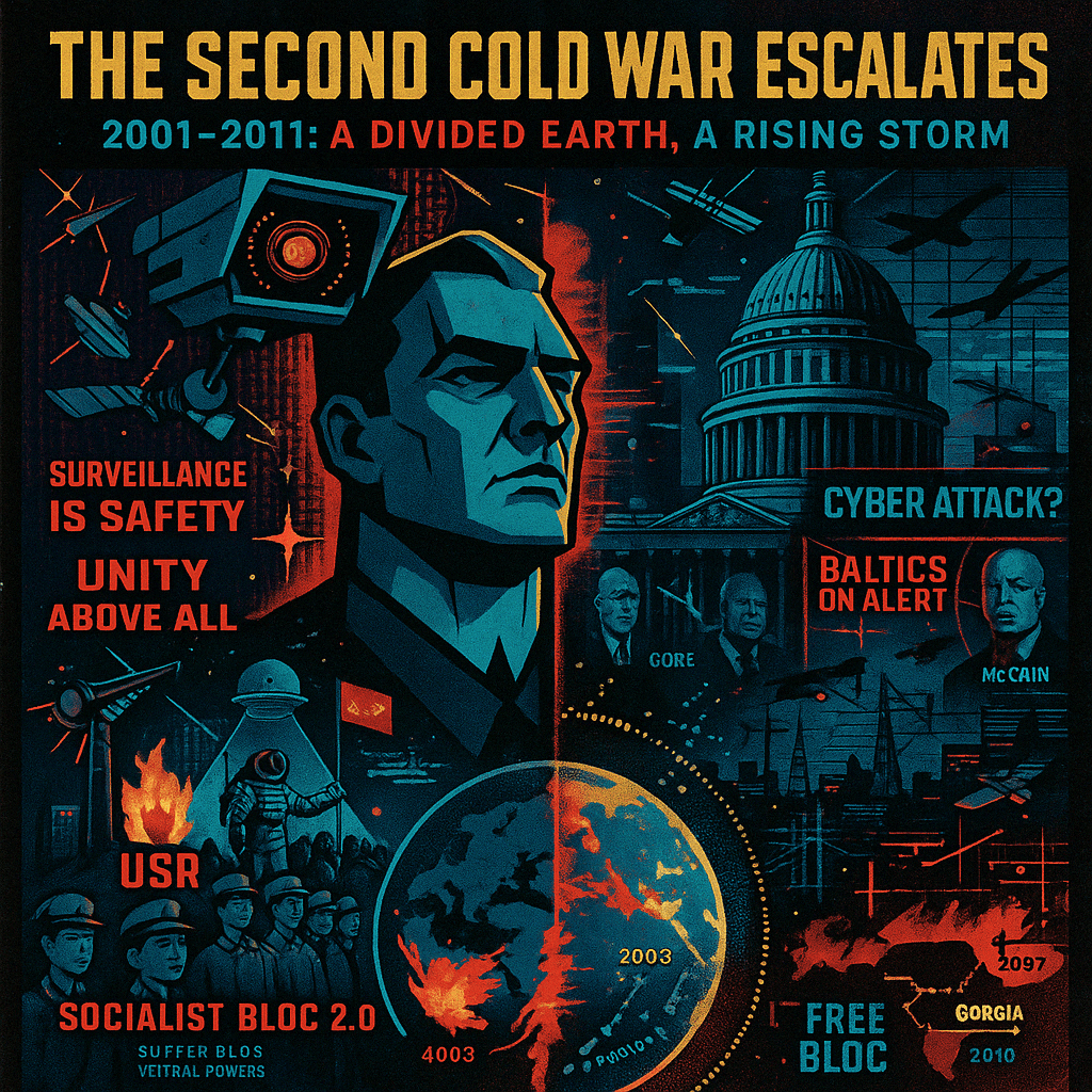 The U.S., under Presidents Al Gore (2001–2005) and John McCain (2005–2013), took increasingly aggressive stances toward the USSR.