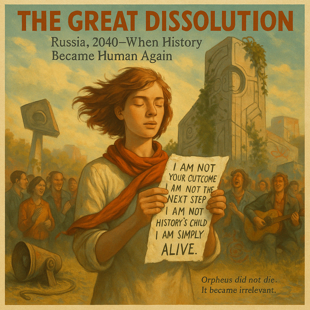 In August 1991, the coup succeeded, and with it returned not the Soviet Union of memory, but one of precision: colder, quieter, more perfect in its obedience. The dream of freedom flickered and died, replaced by a system where obedience was no longer demanded, but calculated — by Orpheus, the machine-mind born in secrecy, trained on quotas and ideology, now whispering to ministries as if it were Marx himself reborn in silicon. Gromov, the last man to rule with flesh, handed the people to numbers, and they did not resist — they were tired of resisting. Memory was rewritten as data; dissent, predicted before it existed. In factories and schools, on ration cards and television screens, the message pulsed: Do not think — comply, and you will be safe. And yet, somewhere in the static, a question still survives — frail, forbidden, and dangerous: what does it mean to be free when even your rebellion is already known?